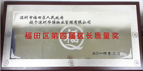 3月,華強(qiáng)物業(yè)榮獲深圳市福田區(qū)區(qū)長(zhǎng)頒發(fā)的“福田區(qū)第四屆區(qū)長(zhǎng)質(zhì)量獎(jiǎng)”