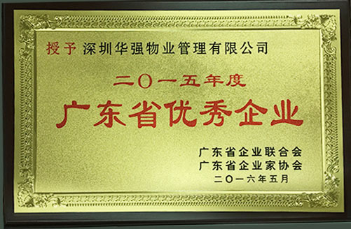 5月,深圳華強(qiáng)物業(yè)管理有限公司榮獲“2015年度廣東省優(yōu)秀企業(yè)”