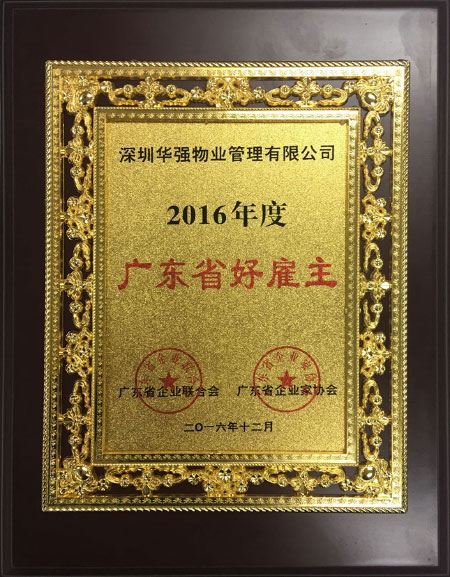 12月,華強(qiáng)物業(yè)榮獲“2016年度廣東省好雇主”