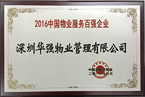 6月,深圳華強(qiáng)物業(yè)管理有限公司榮獲“2016年度中國(guó)物業(yè)服務(wù)百?gòu)?qiáng)企業(yè)”